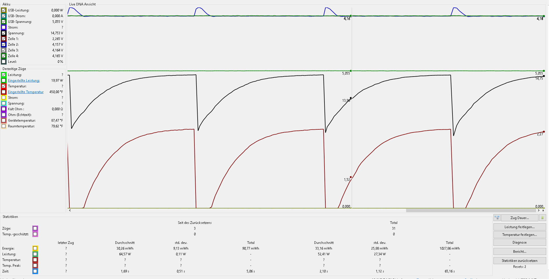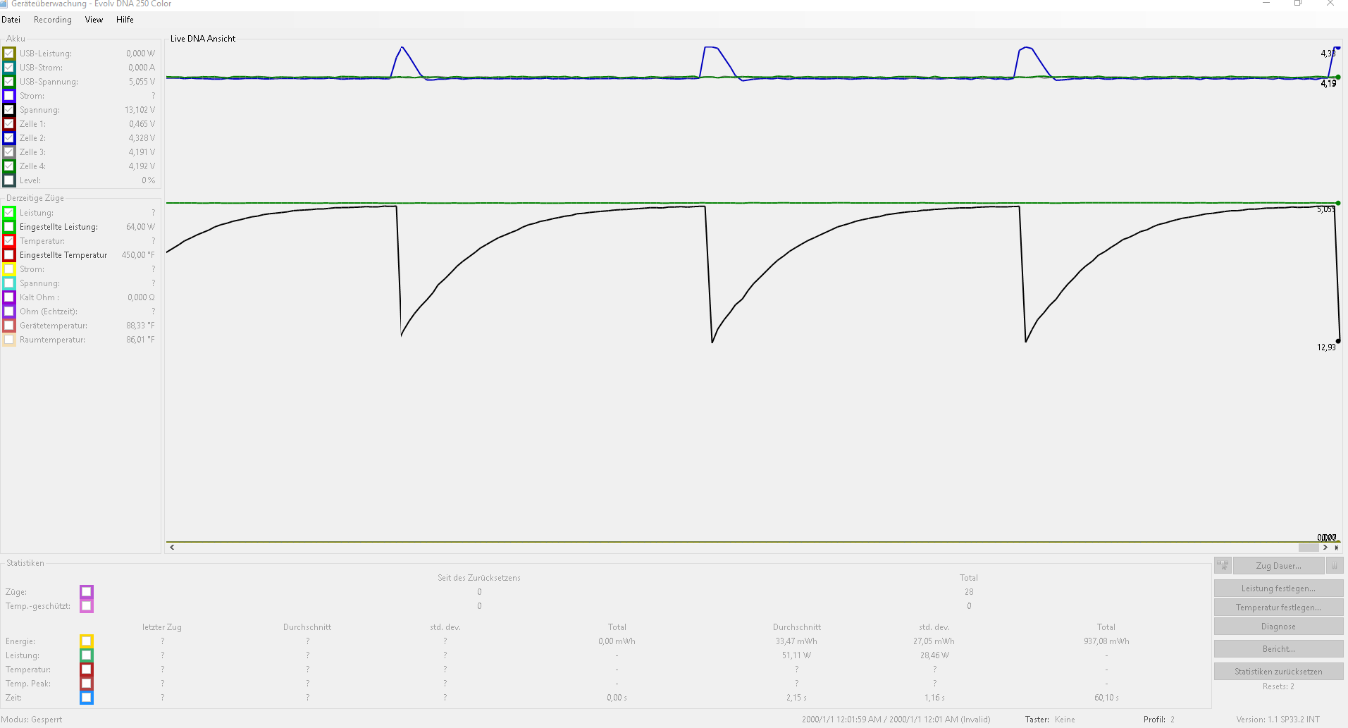 I chjecked with a multimeter on the DNA250 Board solders. its reliably showing 16 Volt's every Cell has 4,2Volts (fresh charged in an external Charger) and all cells have been changed.