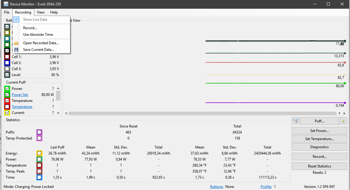 2. Where can I find "Save all device puffs" ? On device monitor does not exist. I have a DNA 250.