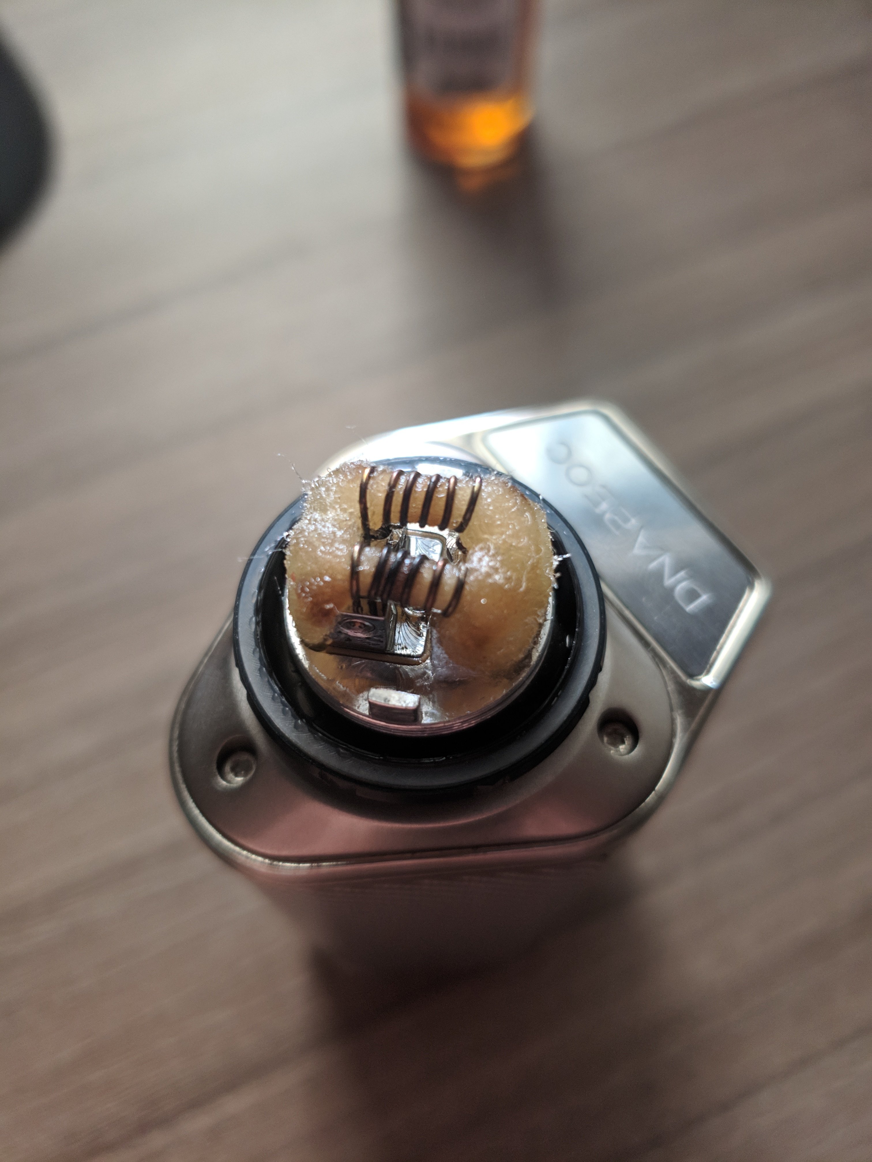 Hi guys, just managed to achieve what i was talking about. The first picture gets me the temp protected warning with little juice. In the second one, i just dripped juice to see if that was the problem, i was able to vape a little longer but got the same warning too. I tought that with replay it would lower the wattage and allow me to keep vaping but it just cuts the power. Any help woud be apreciatted, thanks. -