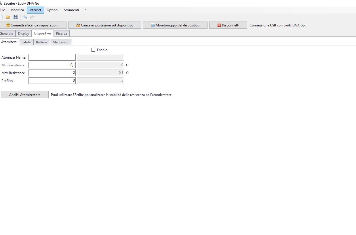 Hi everyone I apologize if I open two similar posts, but the previous ones are not well explained, I try better now In practice I bought my first Box mod for a week, with the Evolv circuit of Dna Go, the Box is called NEO GO, and is built by a Belgian modder, who is called "Sixstysevenvapour". The problem is that I am experiencing an output power output, very unstable and well below what it should be according to the law of ohms, let's say that the power set is different from the output at least 4-5 watts on average , this applies to all values that I set, for example if I set 11 watts at the output, the power actually delivered will be 8 watts ... Also you can see that the two green lines in the device manager are not even parallel with such a low power, but that of the output power fluctuates very much in frequency, as if it were a sort of activated tc.In my case, there is no tc on the dna go, but the replay function that I have deactivated. if I activate the replay the output power oscillates even more.I tried to contact the modder who builds my Box and said that according to him 99% are one of the cables of the cup of the pin 510 loose, but I checked well, and they are not loose at all. As soon as I got the Box the first two days was fine, then suddenly for no apparent reason it started to go wrong. Now I don't know if maybe some service pack, or other update, that influenced this behavior of my Neo Go Box.I have no experience with DNA circuits, but I have noticed that the software version for DNA GO does not have a management for the batteries, like that of the 75watt, but a much simpler one. Not only that, the charge values of my battery that are all new and the best the KEEPPOWER 18350, are not read correctly by escribe,as a percentage of charge, but there are small differences Now I would like to understand, if this circuit the dna go has or does not have evidence of good functioning with the 18350, because I begin to understand that it was born for the Orion with 900-1100 mAh lipo batteries,I would also like to understand if I am the first victim of the modder's risk to use it (DNA GO)with these 18350 batteries, which seems to understand that it is the only IN THE world,that to have used and sold it with a Mod. I would also add that I tried two new good quality atomizers, both with low resistances in the order of 0.25-0.70 ohm, but the box does not push more than 10 watts on average. I also included an attachment, to make people understand better I apologize for my English, I use the translator, and I apologize if I have not been clear in any question or concept. I await your help Thanks Pino