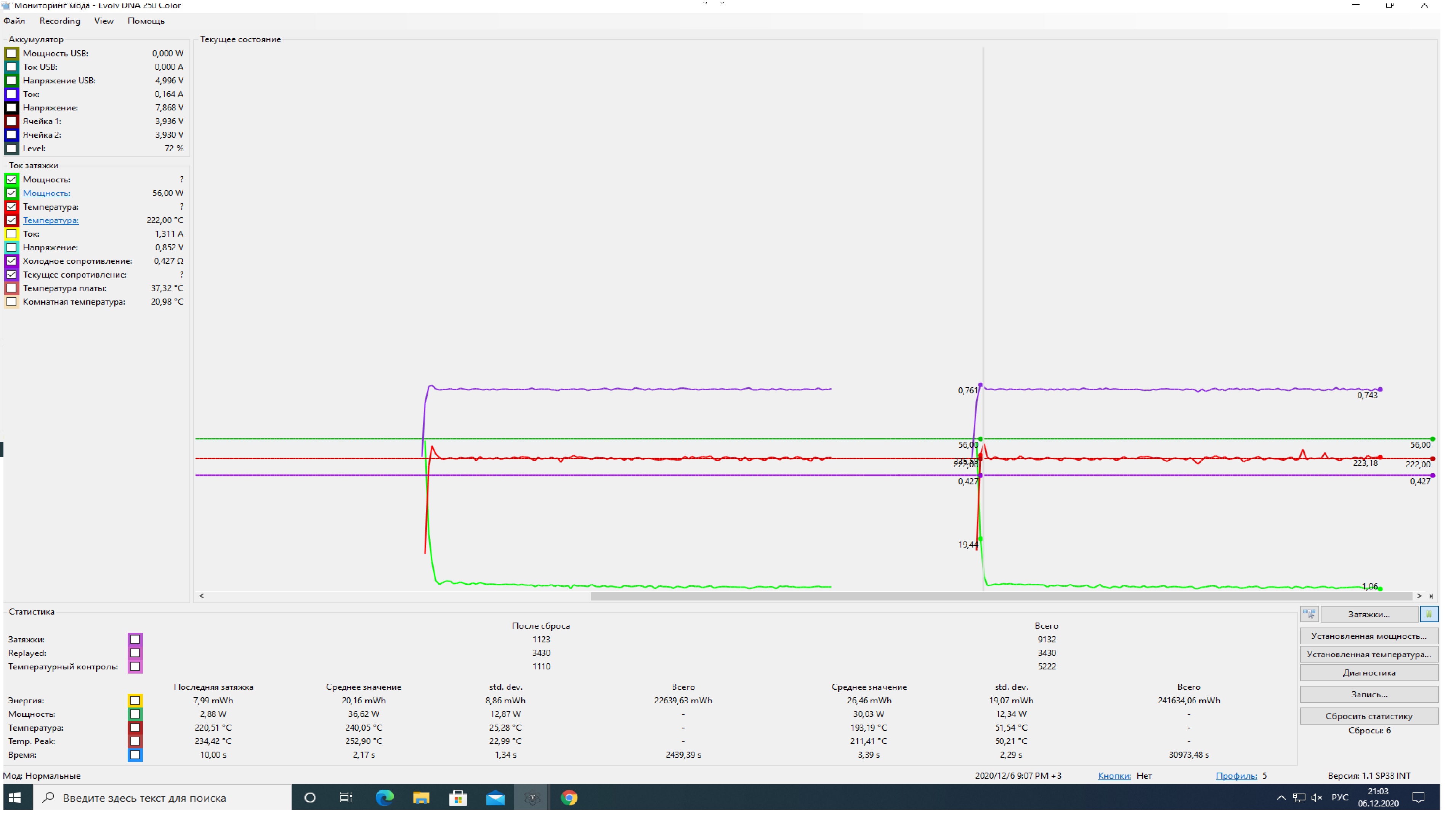 Новый Титан 1 без ваты .Разве так и должно быть 3-1 ват включать напряжение ?Он же должен его отключить и не включаться ! я жарил 10 раз примерно вот откуда он включает 230 градусов на фото последнем!? наверно из-за этих графиков красных он выходит за рамки до 230 и включает напряжение эти два вата 2-3 вата или один 1.75 и хлопок начинает румяниться как на фото New Titanium 1 without cotton wool .Is this how it should be 3-1 Wat to turn on the voltage ?It should turn it off and not turn it on ! I fried 10 times approximately that's where it turns on 230 degrees in the photo last!? probably because of these red graphs, it goes beyond up to 230 and includes the voltage of these two watts 2-3 watts or one 1.75 and the cotton starts to blush like in the photo