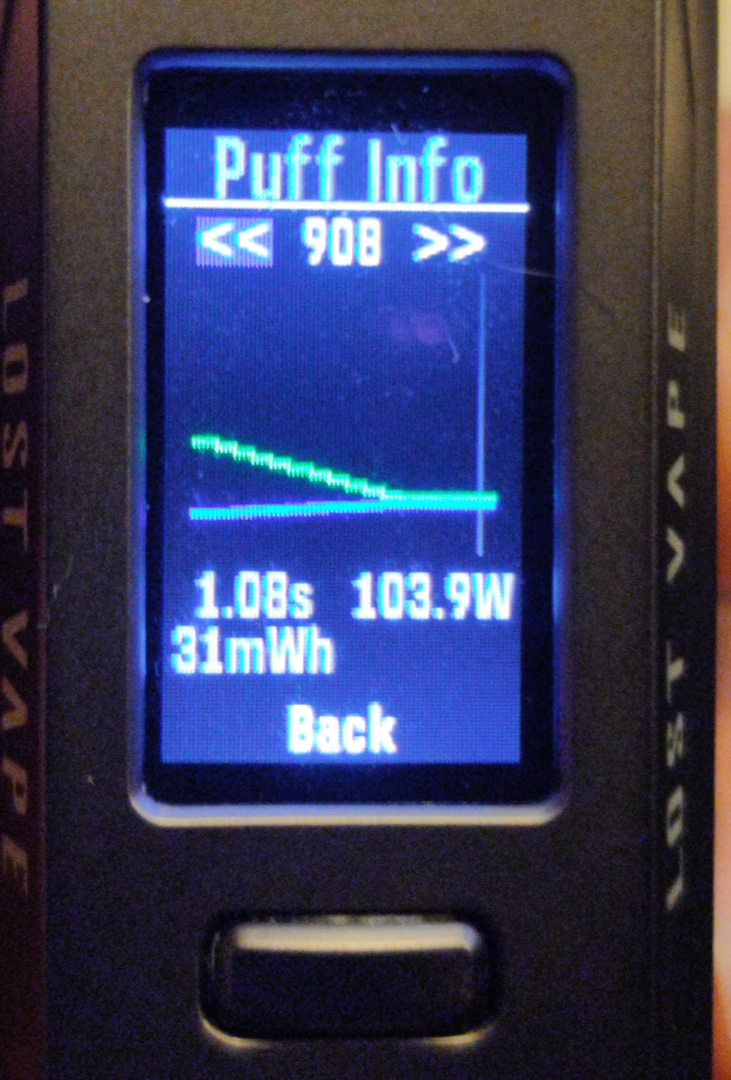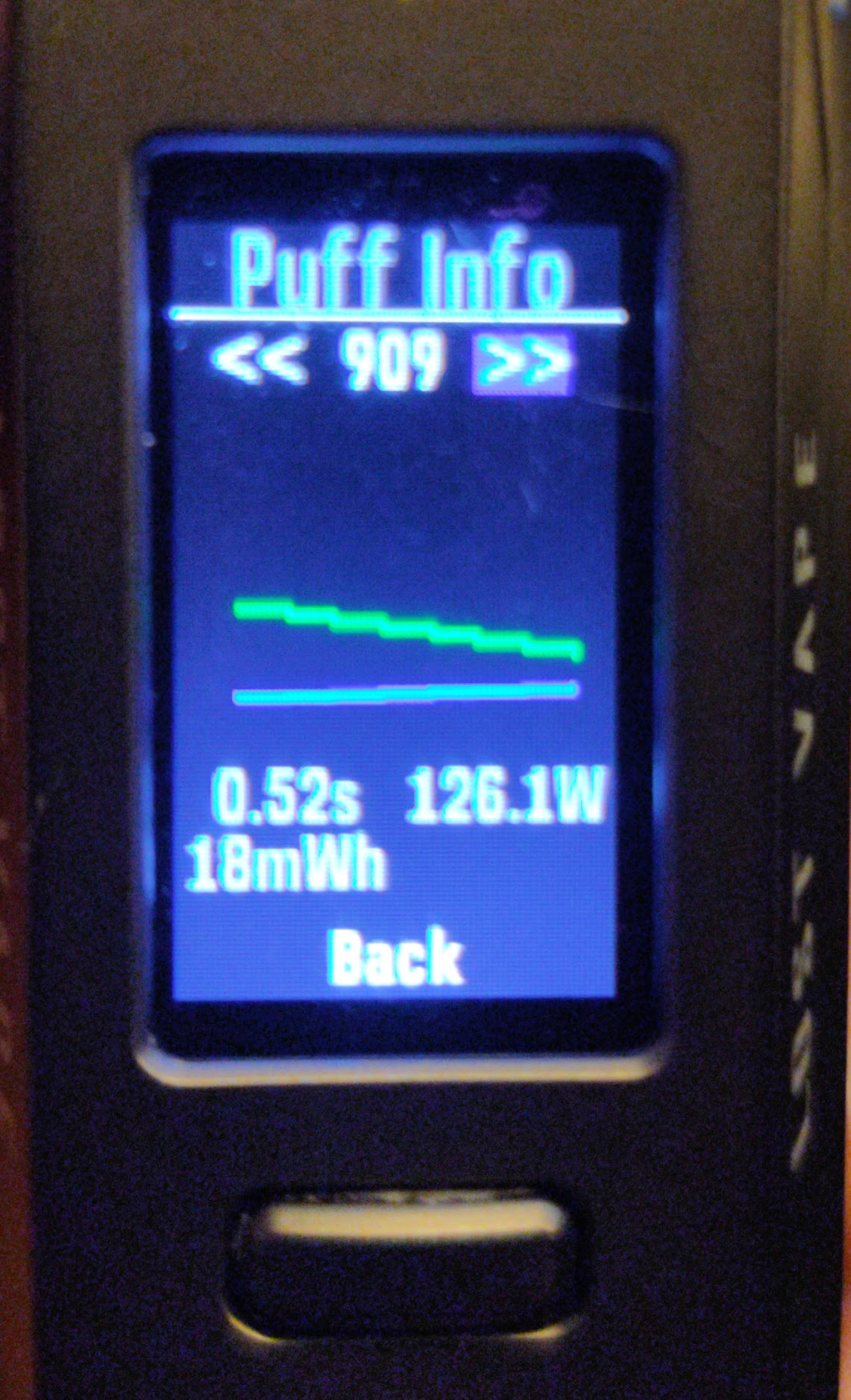 2. Im currently trying to figure out with my vapes are so inconsistent, every-time I take a hit it's weak compared to the second one, the second hit and onward are always strong but the first hit is always weak i don't know why boost is behaving this way, i attached an example of this behavior using puff info you can see what i mean First image is the first hit which you can see in the curve is weird, second image is the second hit which behaves normally and feels good My settings are Profile: Watt Boost Power : 100w Boost: On Punch : 5