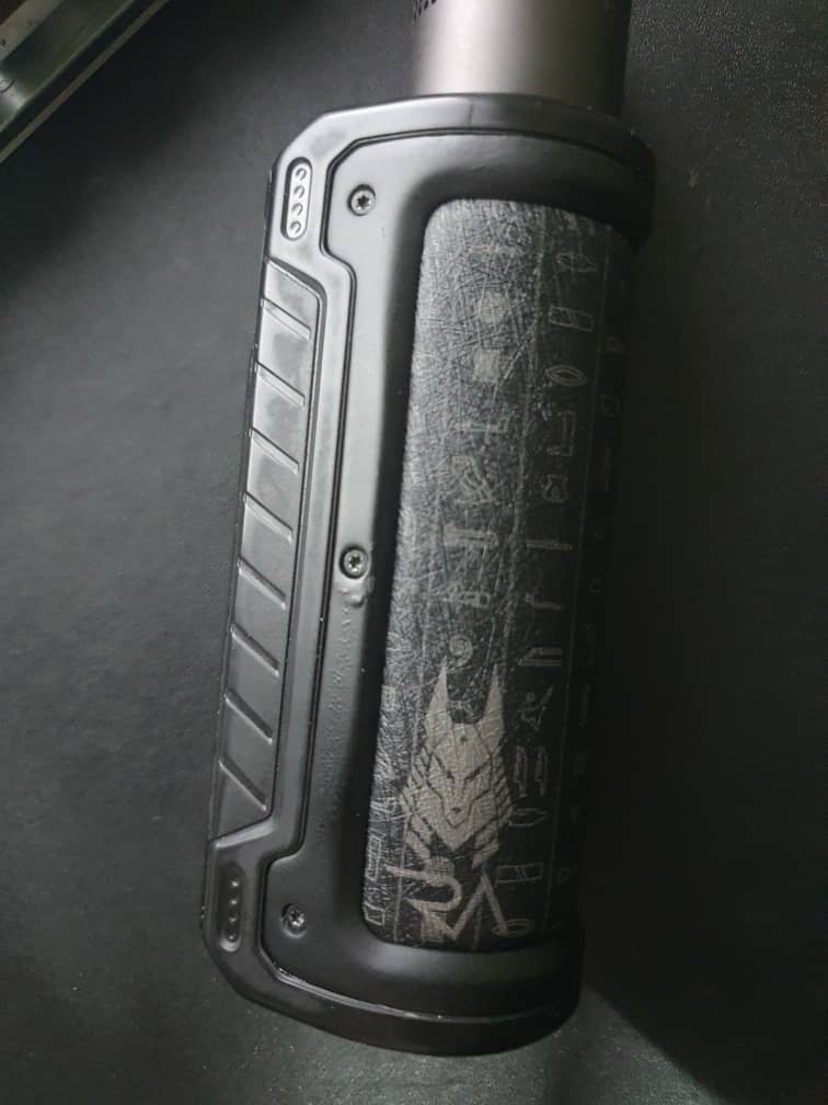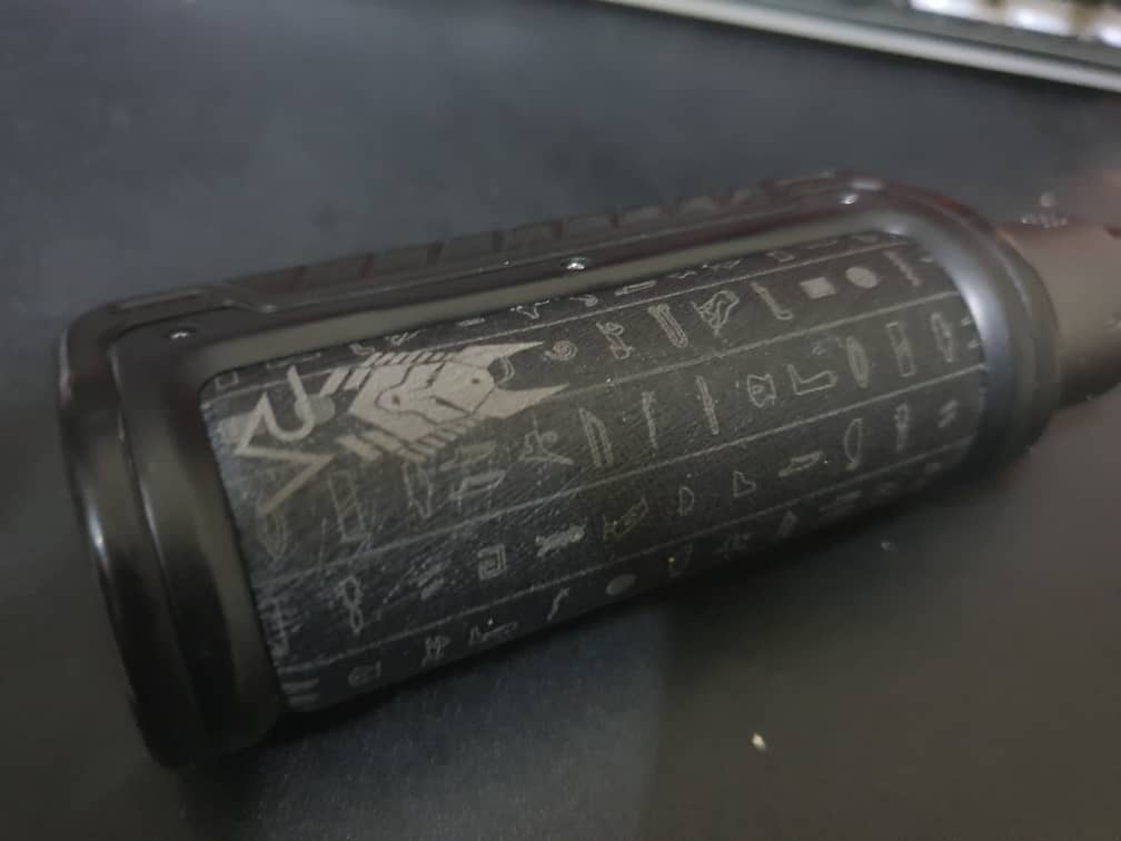 and decided to give the hyperion a royal treat with a coated frame, custom metal plate, custom theme and an ancient Egyptian engraving on a black leather to show the beauty and also my identity