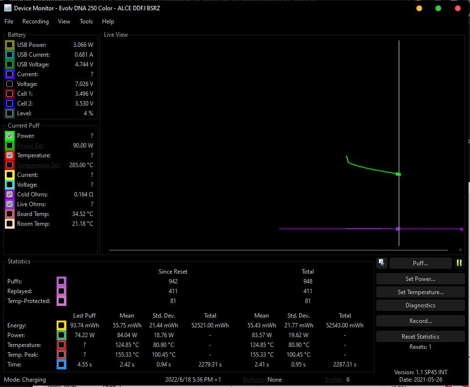 It was an already used coil in an already used tank, both used already on this dna mod. No hotspots and all screws tight. Installed at room temp yes. The coils are a pair of SS316 SSFC's at 4mm ID, 0.16Ω In Atomizer Analyzer the coil sits at 0.164Ω and every few secs will go up to 0.165Ω briefly then back to 0.164Ω Here is the screenshot from one of my hadron plus that has this issue. One of my hadron pro's has the issue also but that is a build I did a while ago so I'm going to check the coils first.