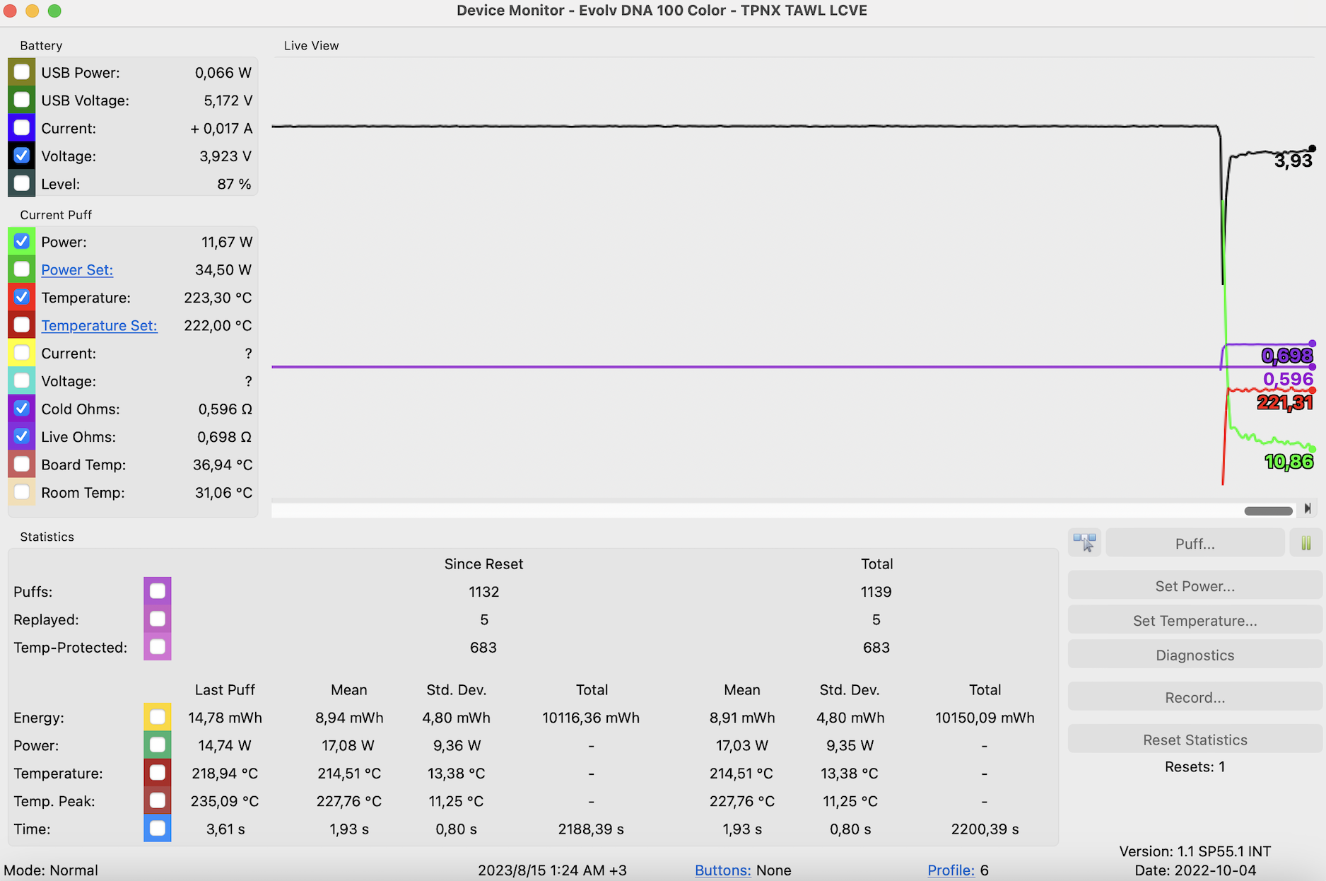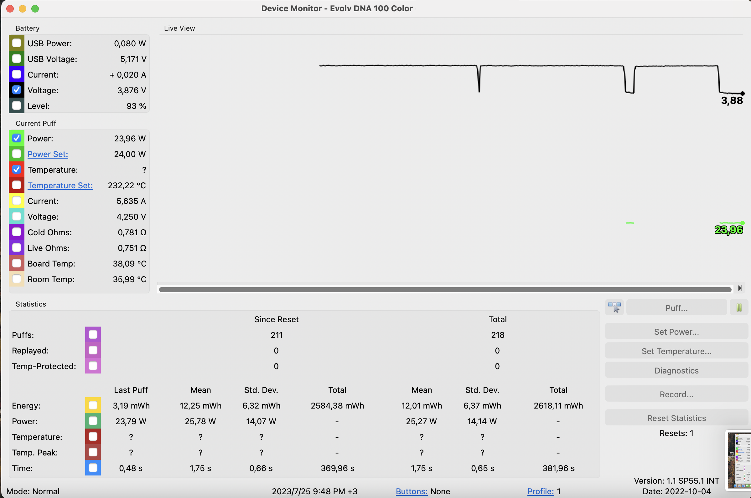 Hi. I bought steam-crave hadron mini dna100c, and this is my first dna chip mod. I just want to be sure about battery stats. I bought Molicel P42, it arrived at 3.5 volts and I charged it at 0.5 amp, it is a brand-new battery but it made in june 2021.
