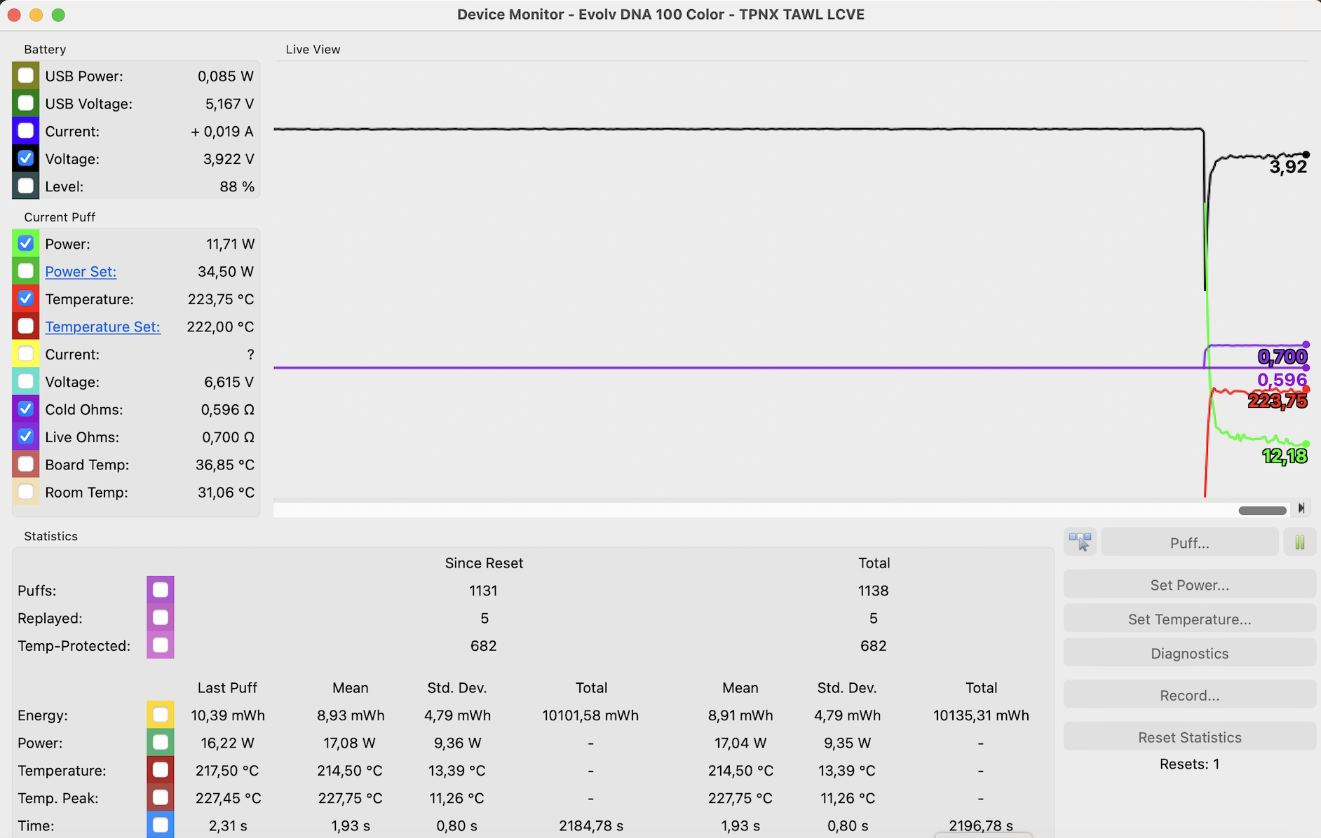 3. wet wick. but coil's form was not very good, but it does not changes anything because i get same result with better formed coils. preheat on, punch 5. i will try with another atomizer now and without preheat. even i try to fire without wick, i never see temp controlled, it fires and coil gets hot. this means something is wrong but what is it...