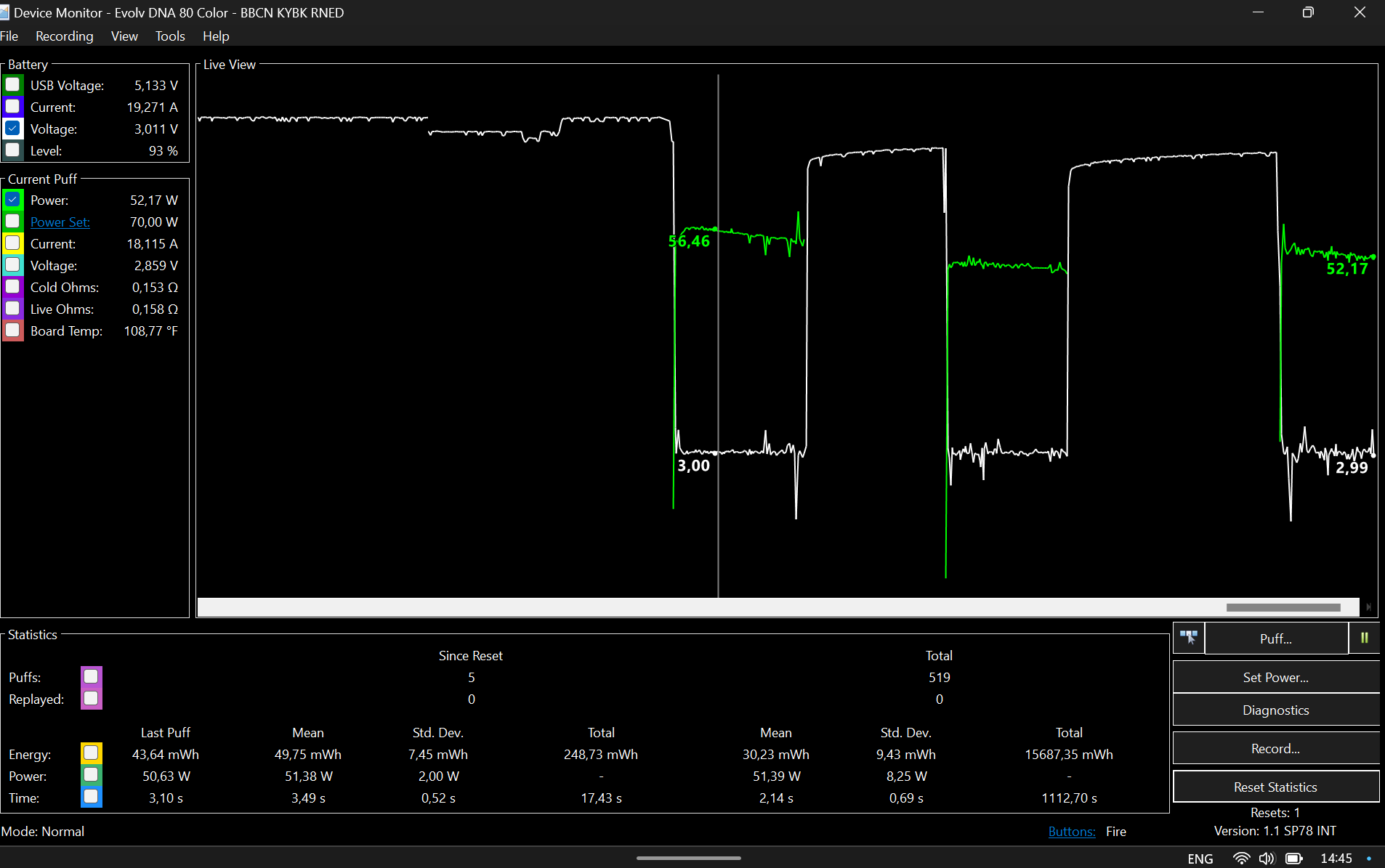 I have been testing the blaze a bit more now and I can say that on the same settings and with the same tank as on the San DNA80C, the blaze performs better. I can't give any numbers but it feels like a battery on the Blaze last for at least 2-3 times what it would do on the San DNA80C. Out traveling now but when I'm back I can see if I can get some more data. Right now I can't use the San because frankly it would drain my batteries completely before I had the chance to recharge them and the Blaze is much better.