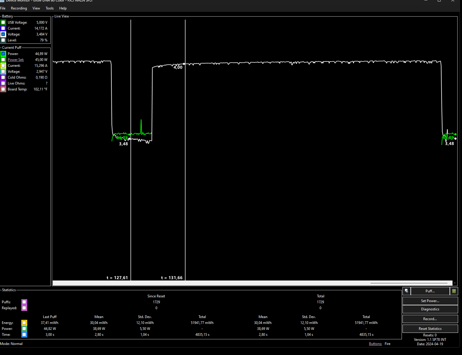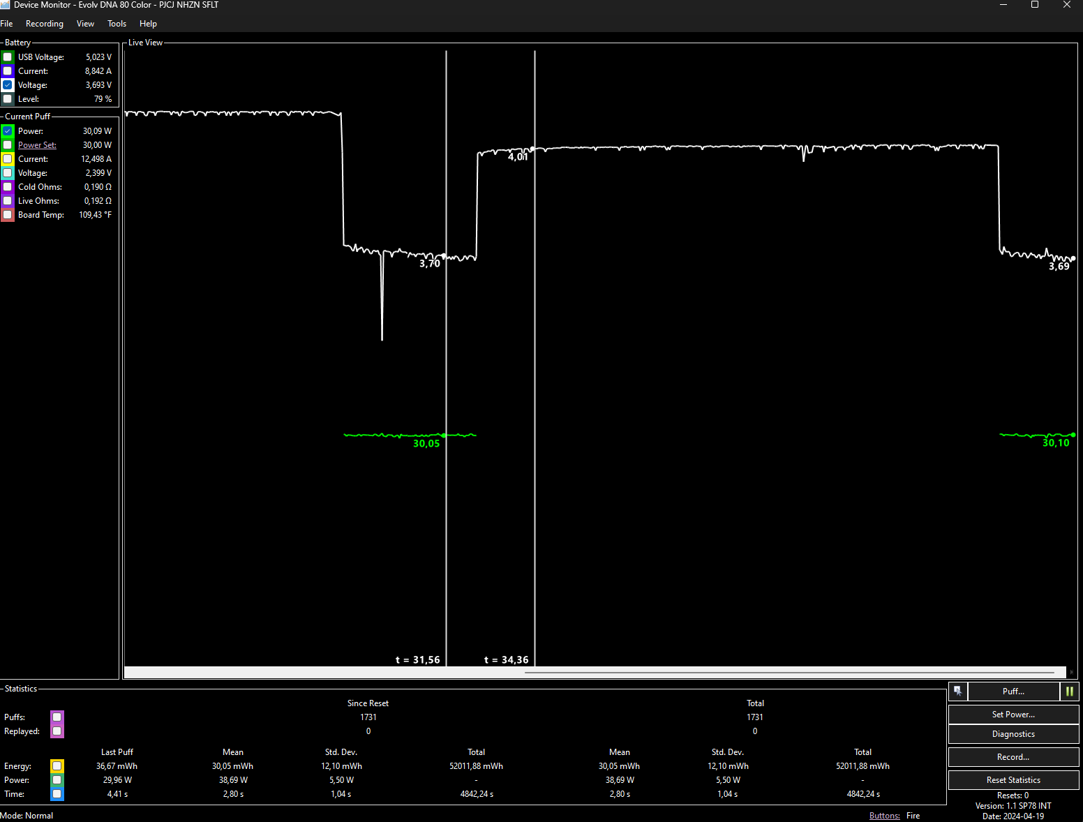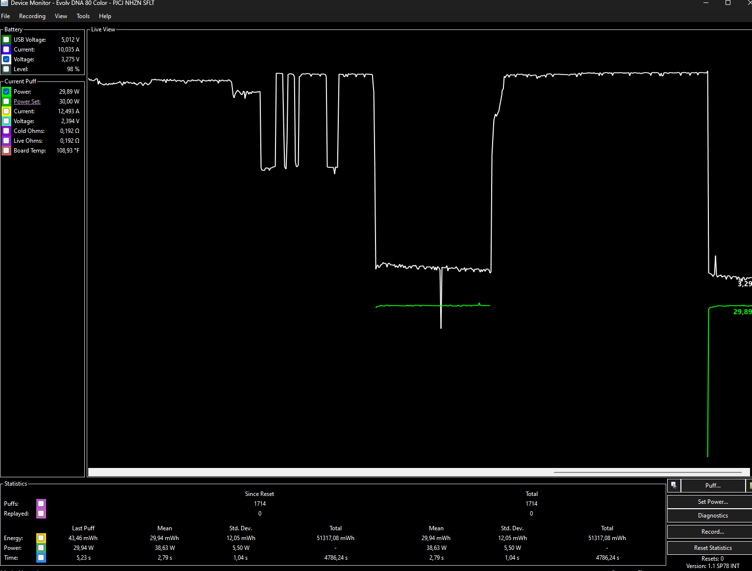 Here is my setting file and a screenshot of the Device monitor while vaping at 30W with the hover mark. if you need any other info please let me know SETTING dna80c.ecig