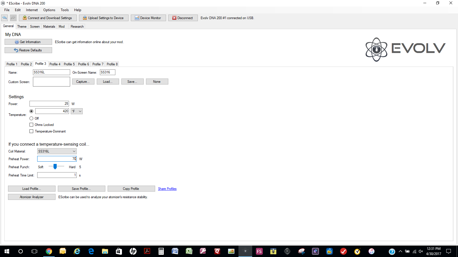 SadikYP Posted May 5, 2017 Author Report Posted May 5, 2017 Would one of the veteran vapers pleas check my SS316L profile & let me know if I've set things up correctly.Also how do I set Temp Protect to work?
