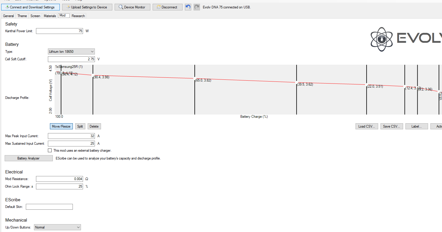Little Brat Posted April 28, 2017 Author Report Posted April 28, 2017 Please don't ask to see graphs. I have spent 3 days with a total of 26 hours reading every post on this issue. I have done the atomizer, mod temp and battery calibration twice and every time I load my profile, the wattage will not adjust for the temperature. I have totally given up on this mod. I have the Drone (250 chipset) and no issues with temp mode. I have a BF Odis 16 atomizer that was bought specifically for this mod which needs temp mode to avoid dry hits as there is virtually no juice well. I am not a happy camper with this DNA 75 chipset