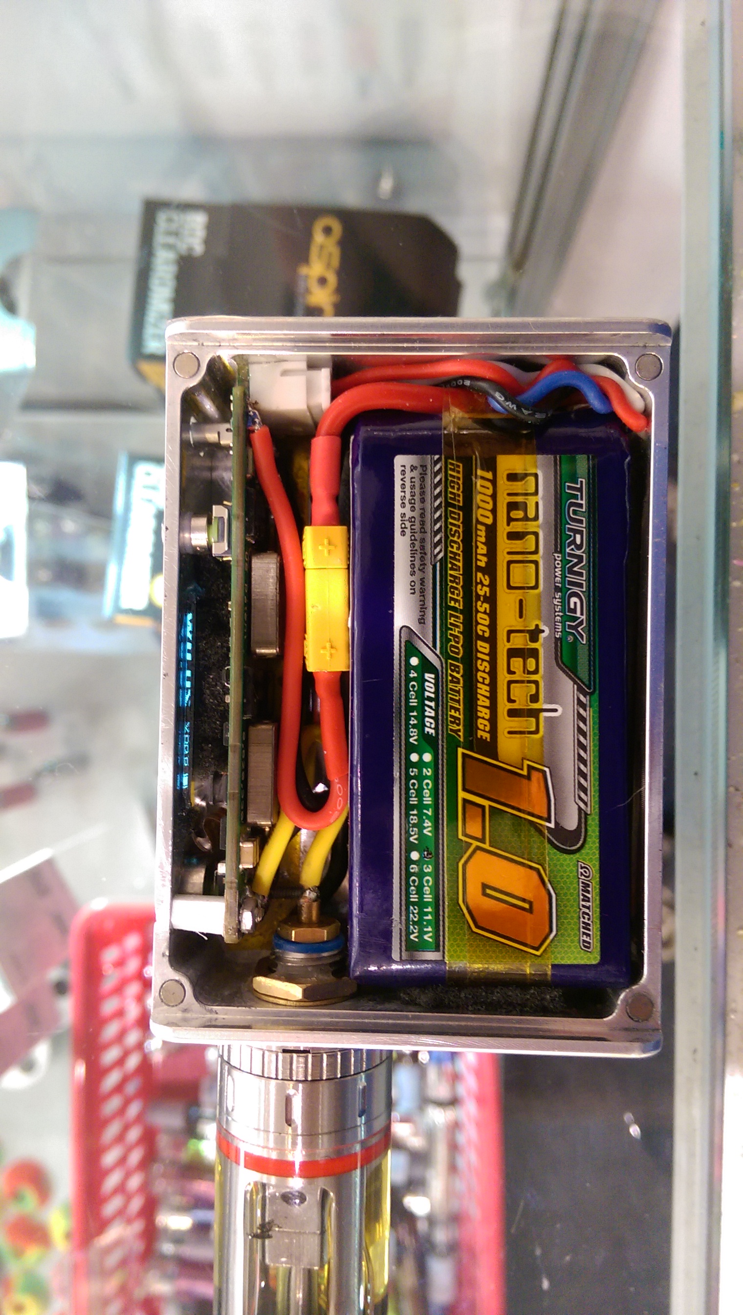redwolfe90 Posted July 31, 2015 Report Posted July 31, 2015 My own 3d printed design, next to a Hana 200. Measures 105mm x 50 x 24, just 5mm taller than a 1590G box. Would really love to get this made in aluminum. Got a 1200mah lipo pack inside, one could put a smaller cell inside to make room for connectors (XT30, etc) for easy battery swapping. As it is now, there's no wiggle room at all.