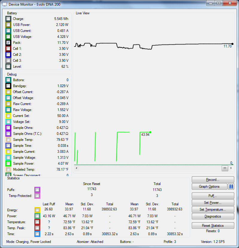 I think my screen cable is on the way out (noticed that the screen wasn't updating properly) so found the extra debug menu, and thought I would check the disconnects. While taking a puff it jumped from 54 to 122 just thought I would point it out.