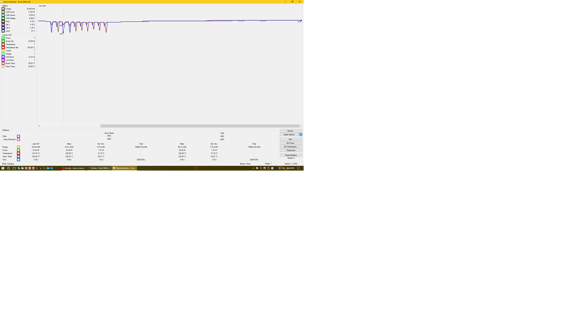 Damob9k Posted March 3, 2017 Author Report Posted March 3, 2017 Thanks Guys for the responses.I'll answer to all:@retird Yes pretty much, disconnected from USB,pulled out the 30Q's and put a set of HE 2's LG ? - the brown ones ! .. plugged USB back in, fired up EScribe & Dev Mon , same result.@giz_60 - OK cool i'll drop them an email .. I don't do FaceBook (don't get me started on that!) Thanks @dwcraig1 - hmm hadn't thought of that ! I'm at work now, so will have a dig around to find a decent one, I have one in my draw but it's only 750 mAAnd yes it's displaying an error when plugged into a USB cable - PCCheersDamianUpdate:So tried dwcraig1's suggestion, found an Apple USB charger with 2.3A output, plugged in the Therion with the Merlin tank with a newly built single SS316L coil, 0.31ohms, fired 6-7 times correctly with only 1 instance of the "Check Battery" error ! Plugged it back into my laptop, and ran EScribe - Dev Mon .. all good !Had to nip off for ten mins, came back tried it again .... "Check Battery" grr , plugged it back into the Apple charger ... "Check Battery"So the only conclusion I can make is that no conclusions can be made from any of these tests !! Which I suppose does point more towards an iffy connection or something in the device.I will email Lost Vape and see what they say.CheersDamian