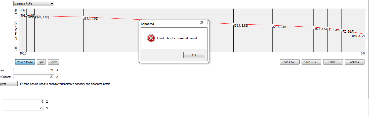 wildan.abp Posted August 19, 2016 Author Report Posted August 19, 2016 Nick said:What are you basing that off of, or where did you get that baseline resistance you want it to read from?There can be pretty large wiring and 510 resistance variances across devices, or something like an ohm reader. All of our boards are dialed in and calibrated using professional quality equipment so I would guess that our resistance readings are correct. We have seen time and time again where our boards are more accurate resistance reading wise than anything else, and every atomizer reads lower than anything else someone owns.The Lost Vape mods in particular have an extremely high spring force, and are very well made from a resistance stability and accuracy standpoint. Also, if you want to completely take a new resistance reading I would suggest removing the mod resistance, uploading settings, removing your atomizer, and performing a Hard Reboot of the device via EScribe. After the atomizer is room temperature re-attach it and see if it reads differently.It's show Resistance read still the same