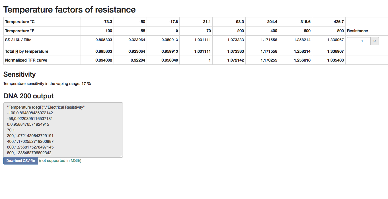 Lowbytes Posted July 13, 2017 Report Posted July 13, 2017 vor 5 Stunden schrieb ndb: For the benefit of whoever else might get tripped by this, after I sent my .ecig files to @James, he came back with a resolution that he allowed me to share here: Basically I was using a steam-engine curve for 316L that was, for some reason, missing the lowest -58F point so that the curve started at 68F (maybe something got screwed up when I downloaded the csv and imported it in escribe, I don't know). This caused noise-induced errors to the measurements performed during the initial phase of firing to fall below the minimum allowed temperature of 68F, hence the temp protect error. Replacing that TFR curve with the stock 316 that comes with escribe did indeed solve the problems. Now, using the stock profile is not mandatory, the important thing is to be sure that the curve starts well below what we consider the minimum ambient temperature we'll be vaping at, to avoid initial lower readings to be considered "out-of-range". I'm not sure I've thanked James enough for finding this out... ;-) Then something went wrong with the download or with uploading it to the DNA75C The steam-engine TFR Curve is complete with all needed temp points