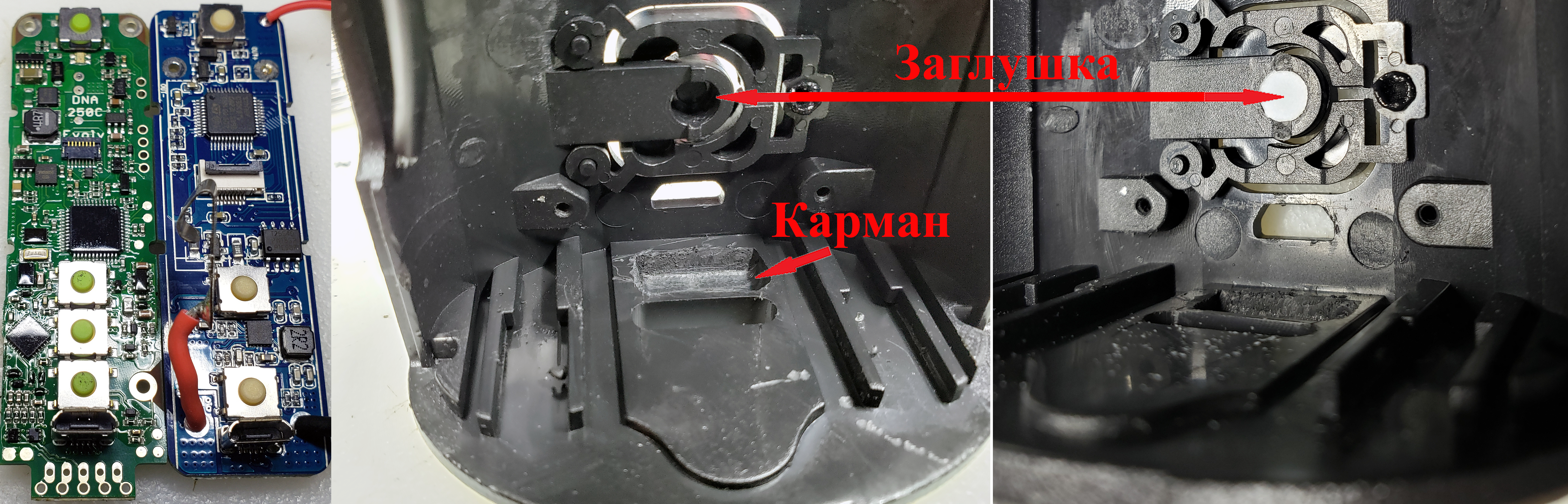 AMDtrucking Posted September 9, 2018 Report Posted September 9, 2018 (edited) 20 minutes ago, Spector NS5 RD said: @AMDtrucking I should have my SXK Boxer clone soon, as well. Thanks for the pics. I suspected (hoped) it would be a direct replacement for the SXK board. Can you PM me or post some pics of the stock SXK board? Thanks! OK. No problems. Because the DNA250C board is longer on the bottom, I milled (with Dremel) a small cavity in the bottom of the case. Also, nonexistent "SELECT" middle button has a hole in it. I filled it up with a little white delrin plug. I made that photo for my Russian friends and marked it in Russian. But I'm sure, you'll understand. Карман - cavity, Заглушка - plug. Also, DNA250C has one of it's inductive transformers offset to one side, you will need to cut a hole for it in the plastic cover. Окно - hole in this case. And I'm sure you know how to solder jumpers, on the board, to make it work properly, with two batteries. Edited September 9, 2018 by AMDtrucking