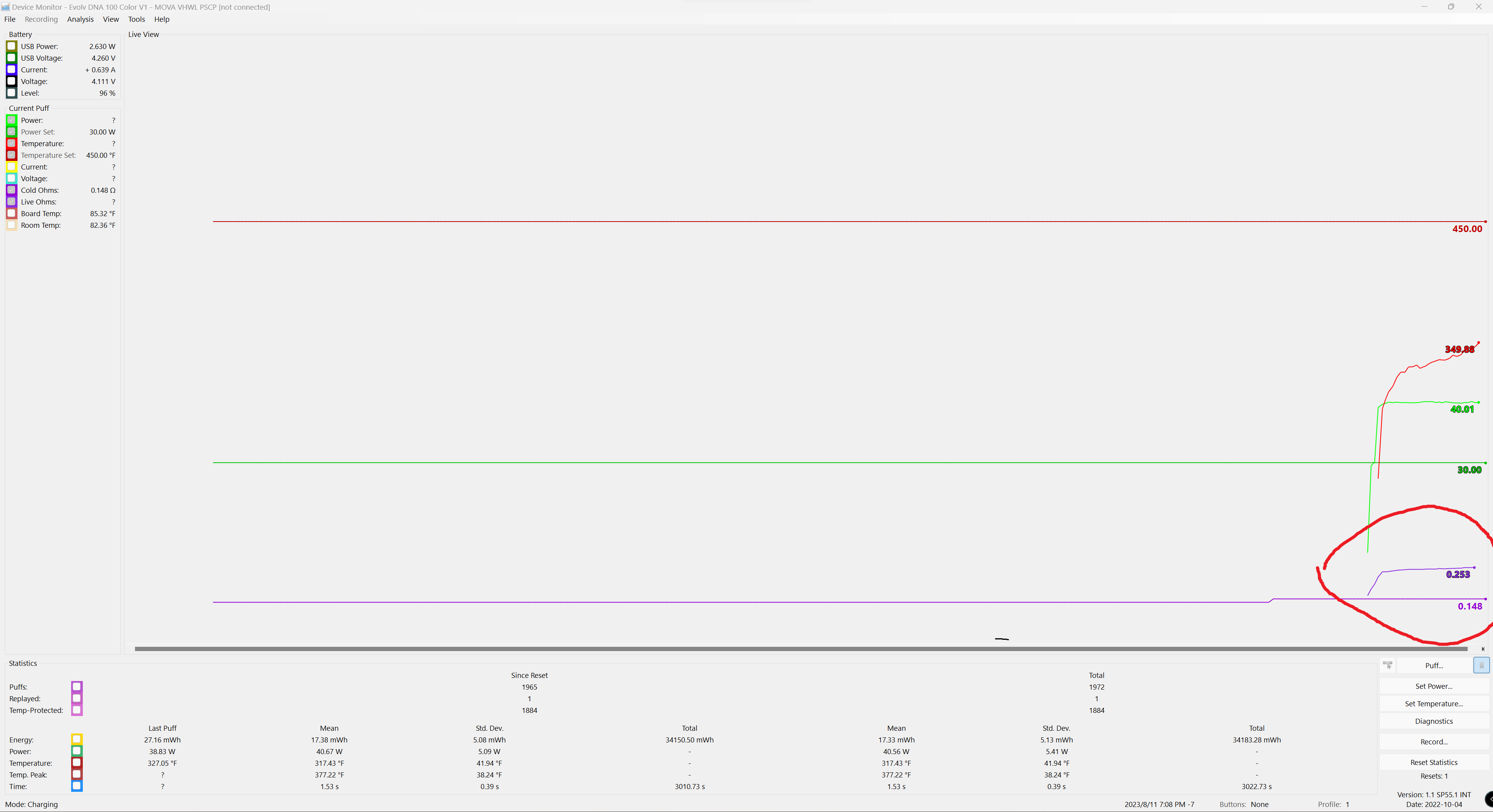 From the screenshots it looks like the temperature you have set is being met with no excessive over-shoot....  you might unlock the ohm's.... I guess you checked your wicking...