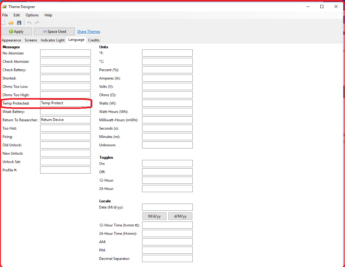 Here I unlocked ohm and my theme was as like you given Temp protected msg. I attached those images, & I am sad to let you know its still not working. Mean when my cotton became dry and I give a shot then its become a dry shot without shoing any temp protected  msg. Now could you plz give me a proper solution how it will show temp protected msg with this temp sensing coil.