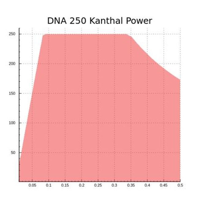 James Posted September 14, 2018 Report Posted September 14, 2018 You can go down to 0.02 Ohm on the DNA 250C. (This software limit is mostly to prevent accidental firing into paperclips, metal shavings, etc. when no real atomizer is attached. You can still use Atomizer Analyzer to read lower resistances.) The lower you go on resistance, the more heating will end up in the 510 connector and wiring. If your mod has a high quality, high current 510 you will have no problem. You will encounter reduced power due to the current limit, however. The output current limit is 65A, so the max power is 65^2*R=4225*R. For 0.02 Ohm, that means a max of 84.5W. You can get 200W down to 0.047 Ohm, and 400W down to 0.094 Ohm. 2