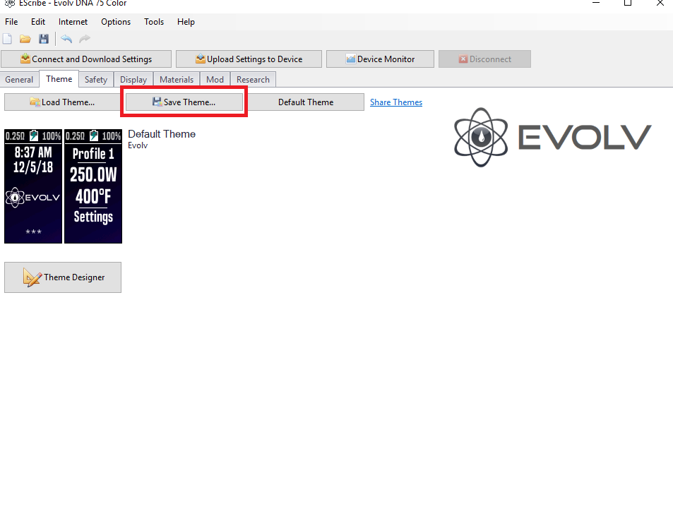 retird Posted December 5, 2018 Report Posted December 5, 2018 You can save the Mirage 75C *.ecig file (which includes the theme) to your computer before changing to another theme. You can also just save the Theme to your computer. Then you can load them back as you desire . This is done in EScribe. 1