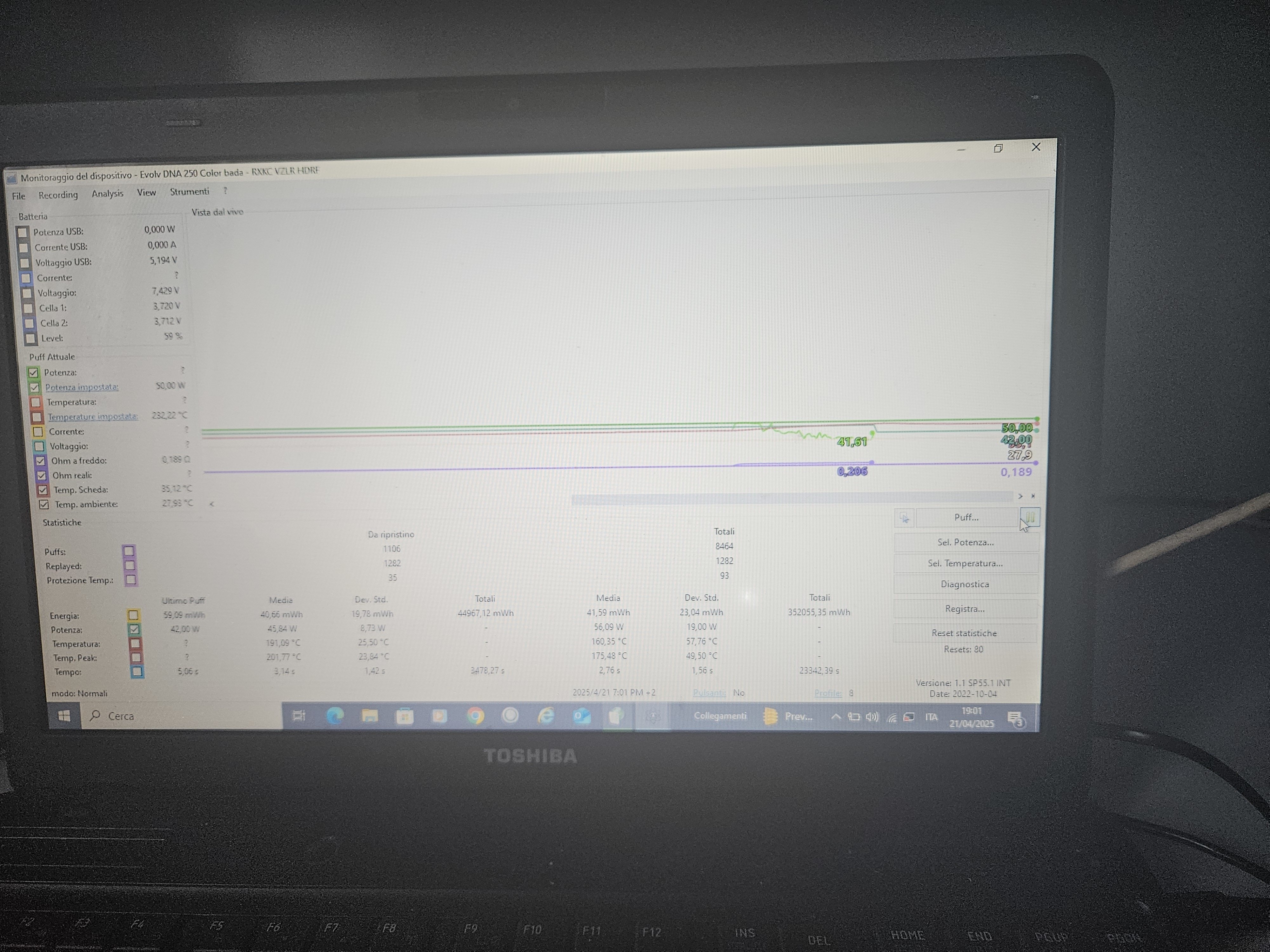 Nicola420 Posted April 21, 2025 Report Posted April 21, 2025 Ciao a tutti Volevo chiedervi un aiuto su un problema che magari è capitato anche a altre persone In pratica io ho una hadron plus dna250c e da poco ho scoperto la modalità Replay Ho come atomizzatore un profile x di wotofo con mesh ss316l e imposto la modalità Replay a 50w faccio un paio di tiri e salvo poi guardando il grafico vedo che i tiri successivi fatti in modalita replay sono scesi di potenza da 50 a 48 a 46 ecc Qualcuno potrebbe avere un idea? Grazie 😉